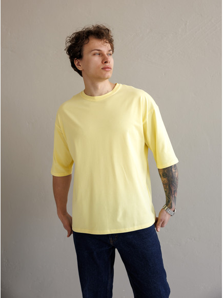 Чоловіча Оверфутболка вільного крою зі спущеним плечем з куліру, лимон