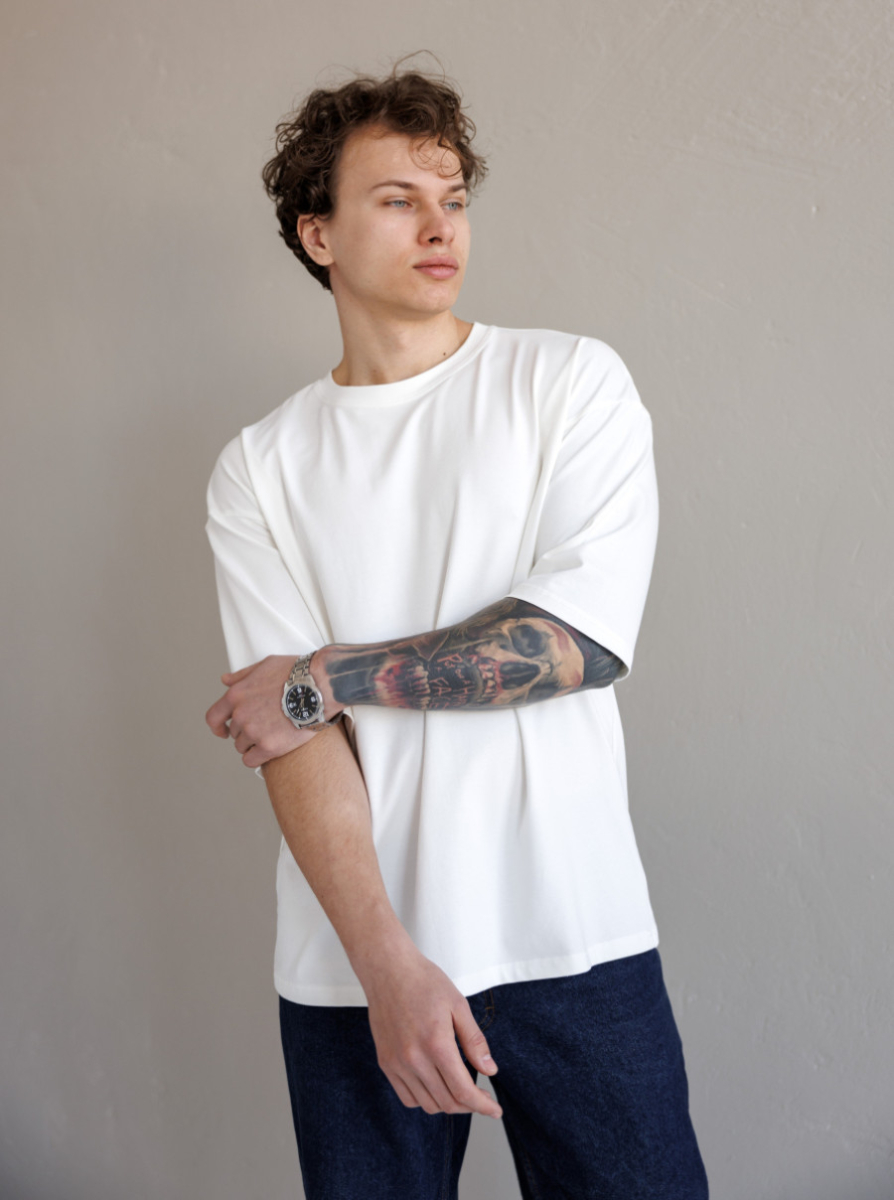 Літня Оверфутболка виконана з преміальної тканини - двухнитки або куліру. Ідеальний варіант на літо, так як тканина дихає, не парить та чудово при цьому виглядає. Футболка вільного крою зі спущеним плечем, подовжена. Не прилягає до тіла, забезпечує комфорт навіть в спеку +30.
