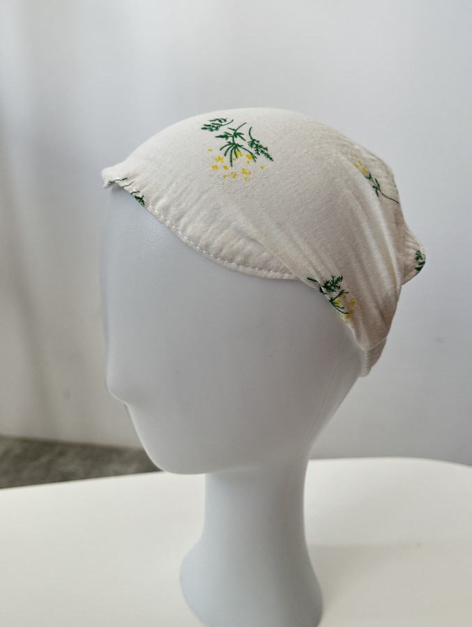 Муслінова косинка, ззаду на резинці. Виготовлена з високоякісного «дихаючого» мусліну преміум сегменту, Тканина легка та приємна до тіла. Забезпечує захист від сонця.