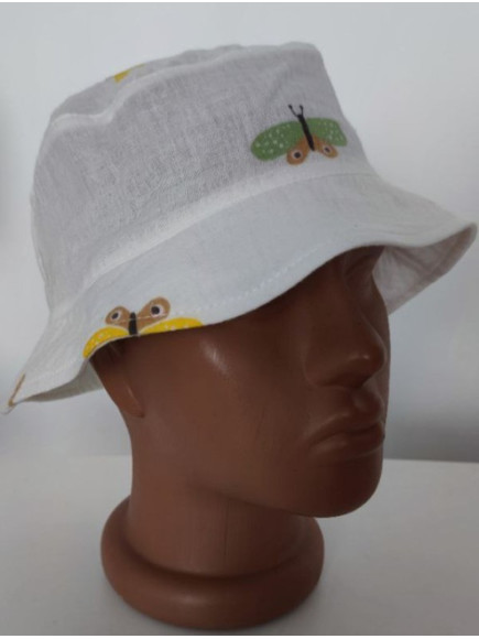 Муслінова панама. Виготовлена з високоякісного «дихаючого» мусліну преміум сегменту, Тканина легка та приємна до тіла. Забезпечує захист від сонця.