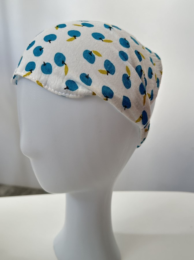 Муслінова косинка, ззаду на резинці. Виготовлена з високоякісного «дихаючого» мусліну преміум сегменту, Тканина легка та приємна до тіла. Забезпечує захист від сонця.