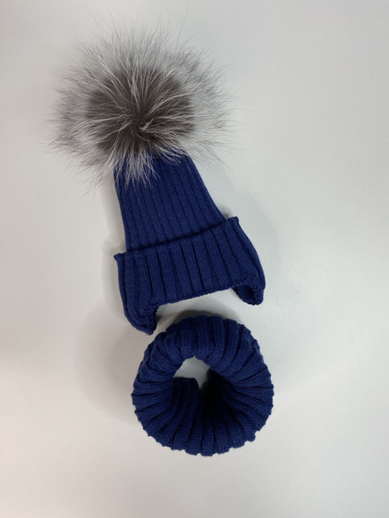 Зимовий набір Барі шапка з натуральним помпоном з в'язки з флісовою підкладкою та снуд з в'язки та флісовою підкладкою. Може бути на окружність голови від 48 до 56 см. Склад в'язки 70% вовна, 30% акріл