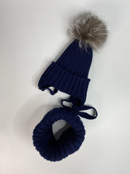 Зимовий набір Барі шапка з натуральним помпоном з в'язки з флісовою підкладкою та снуд з в'язки та флісовою підкладкою. Може бути на окружність голови від 48 до 56 см. Склад в'язки 70% вовна, 30% акріл
