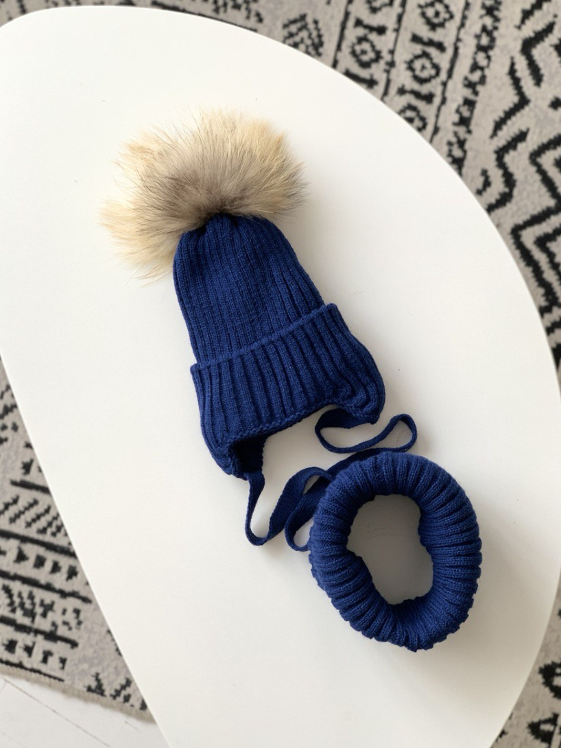 Зимовий набір Ешлі шапка з натуральним помпоном з в'язки з флісовою підкладкою та снуд з в'язки та флісовою підкладкою. Може бути на окружність голови від 48 до 56 см. Склад в'язки 70% вовна, 30% акріл