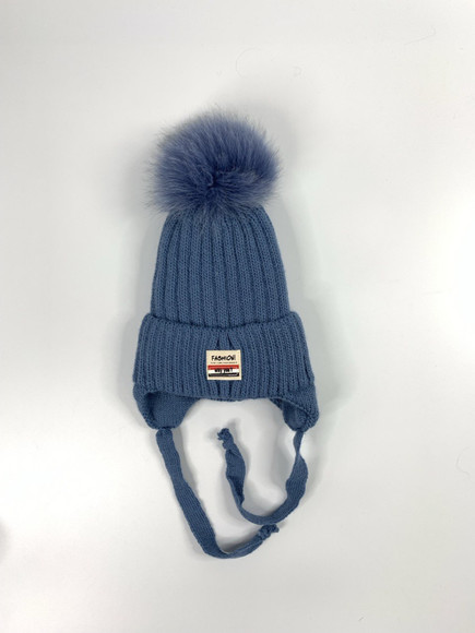 Зимова шапка Рос з натуральним помпоном з в'язки з флісовою підкладкою з зав'язками. Може бути на окружність голови від 48 до 56 см. Склад в'язки 50% вовна, 50% акріл
