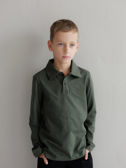 Дитяче поло з довгим рукавом Lim від бренду Popov, хакі