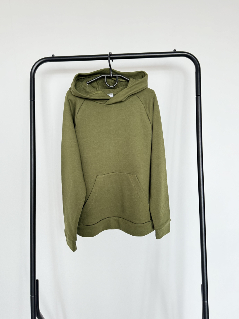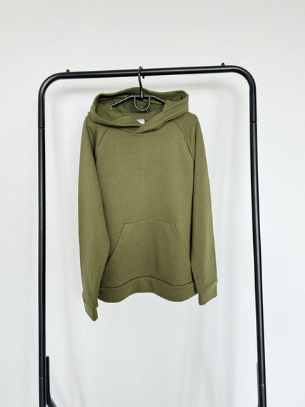 Худі з капюшоном з тканини трьохнитки петлі (демі варіант) з покриттям Soft Touch, завдяки якому тканина не кошлатиться. Спереді кишеня, манжети на рукавах виконані з основи тканини