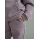 Стильний костюм виконаний зі щільної преміальної тканини з начісом, який гарантує тепло та комфорт у холодну пору. Особливістю моделі для дорослих є подвійний капюшон для додаткового затишку, тоді як дитячий варіант має одинарний капюшон. Манжети рукавів та штанів виконані із м'якого матеріалу - рібани, що забезпечує ідеальну посадку.