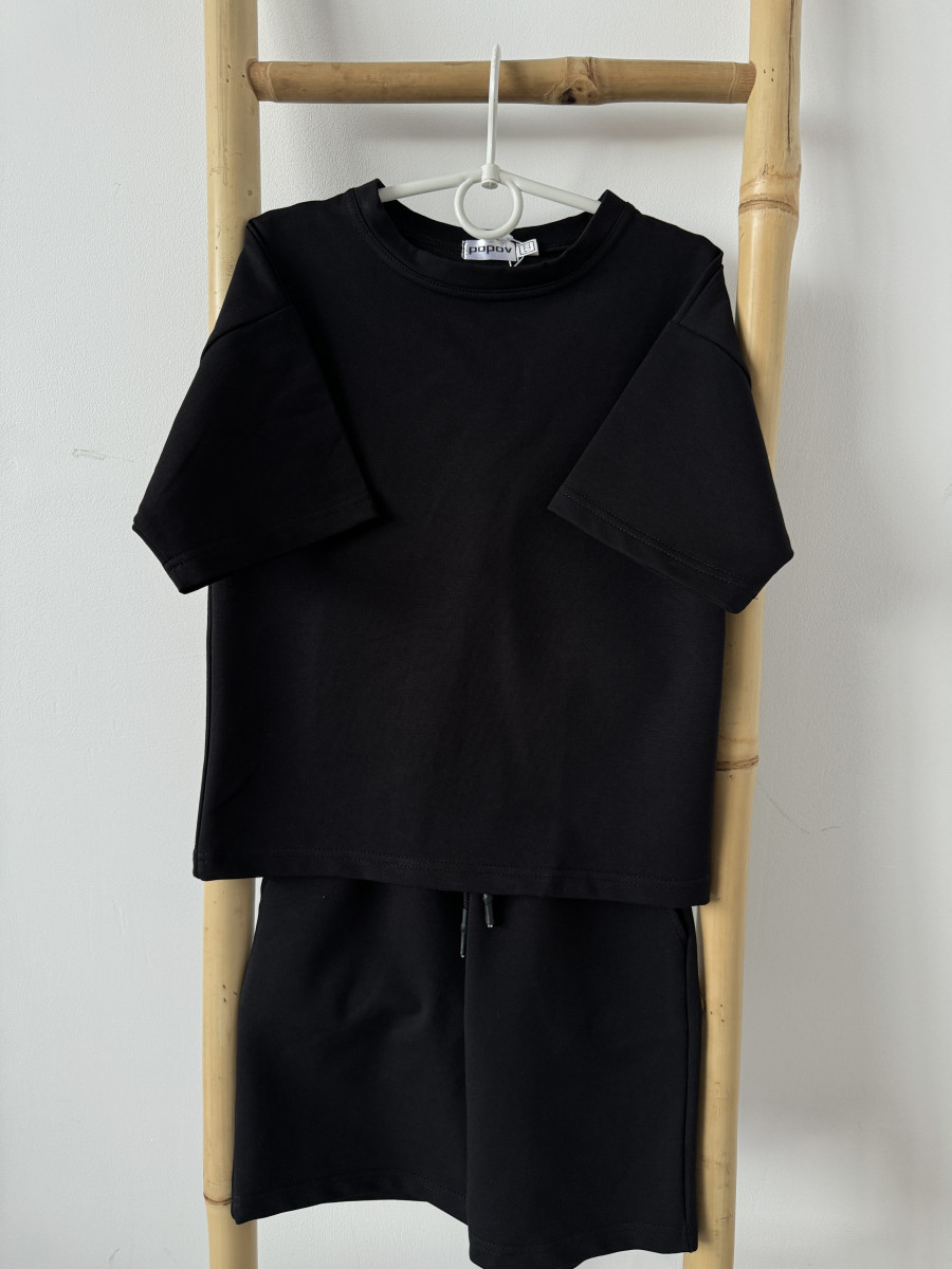 Літній дитячий костюм "Овершорти" футболка вільного крою та шорти від Popov, чорний