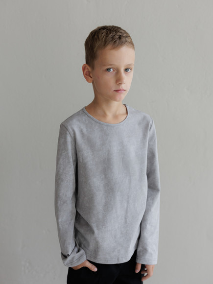 Дитячий лонгслів, пошитий з варки, має пряме плече та прямий крій