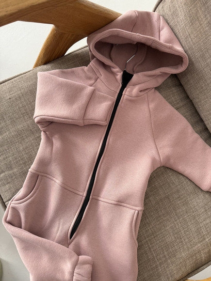 Дитячий утеплений комбінезон «Ромпер» з капюшоном. Модель для діток в розмірах від 74 см до 158 см виконана із високоякісного бавовняного начосу, який забезпечує тепло та комфорт під час носіння завдяки «дихаючій» тканині, яка не втрачає форму та колір після прання. Ромпер з застібкою-блискавкою, кишенями для зручності та резинкою на спинці.