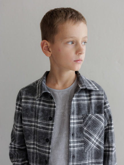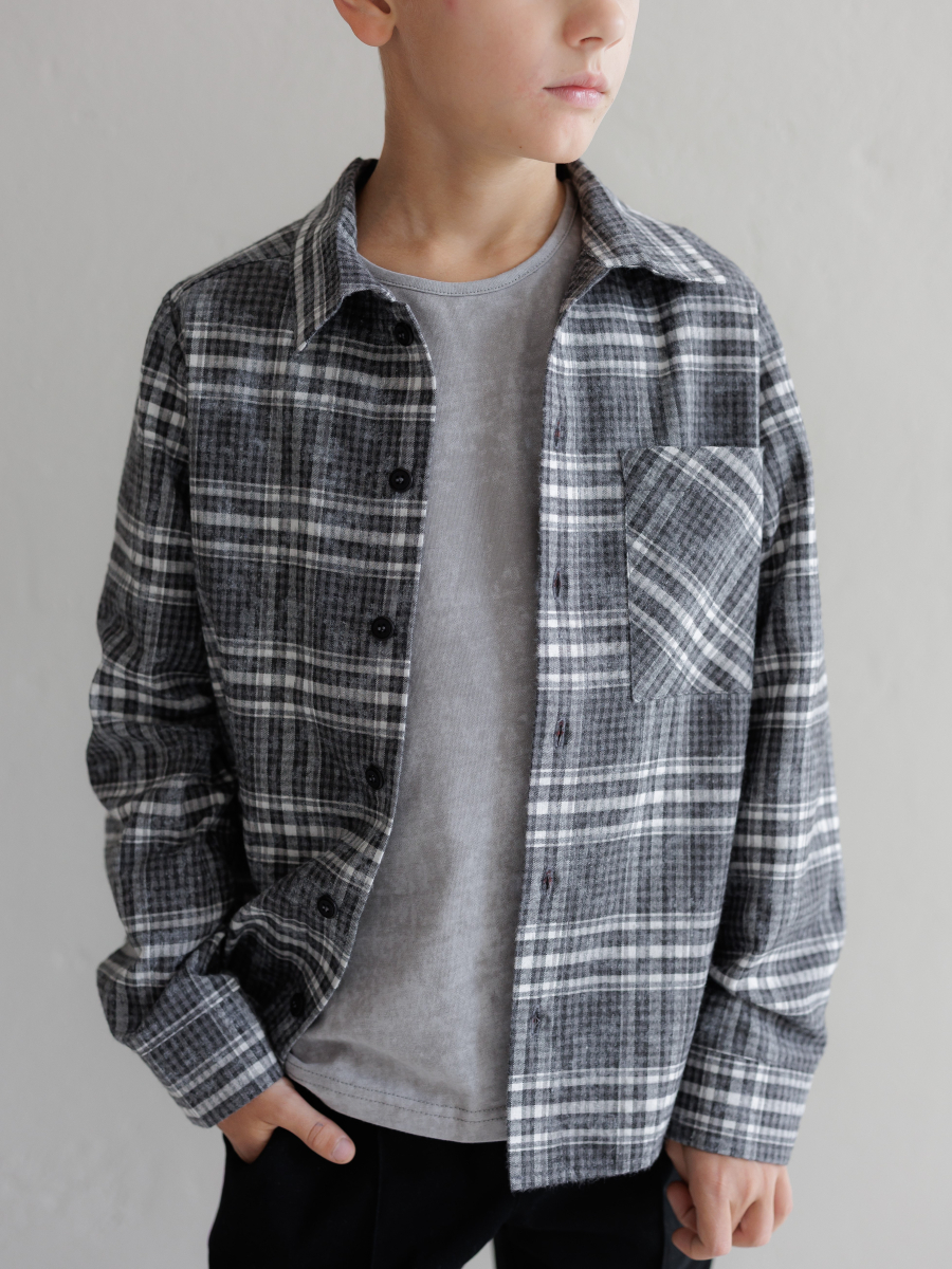 Дитяча сорочка Est пошита з фланелі , в складі якої 80% бавовни та 20% поліестру. Модель унісекс і має класичний прямий крій, кишеню спереду та ґудзики. Пошиття дуже високої якості. Модель повномірна