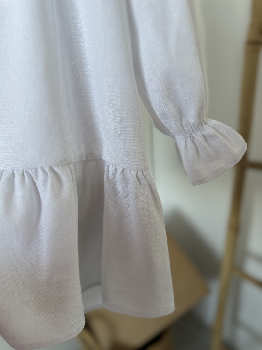 Дитяча сукня з 100% льону, яка має вільний крій. Модель трапецієвидної форми, довгий рукав. Підходить як і в школу, так і на Вашу особливу подію. Дуже зручна, комфортна та стильна сукня для Вашої красуні.