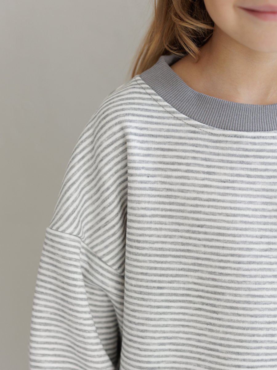 Дитячий Вільний світшот з тринитки від бренду Popov, сіра смужка