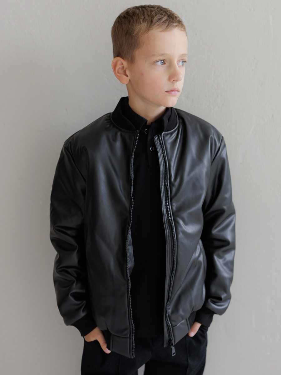 Зверху - кожзам. Утеплювач слімтекс 100. З середини все закрито підкладкою. Є вітрозахисна планка. Наш Бомбер відтестований та готовий ощасливити Ваших дітей ?