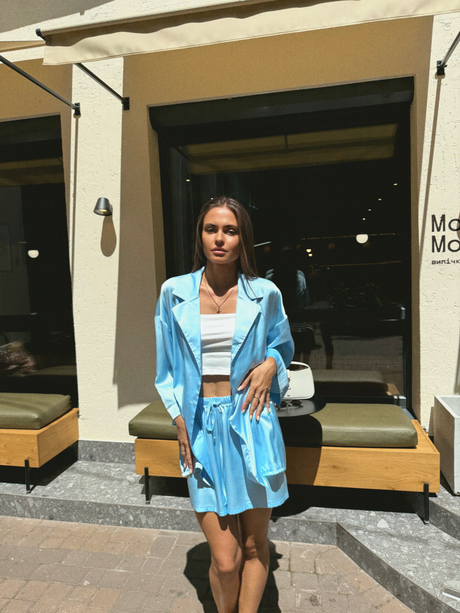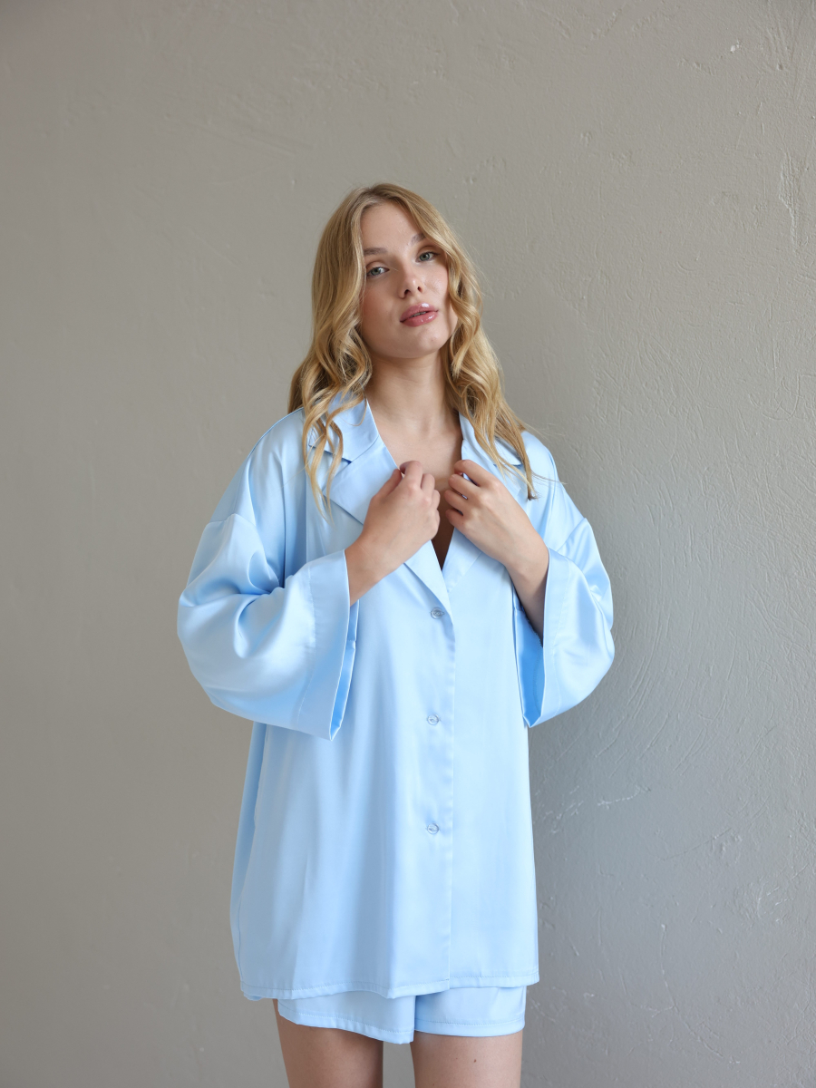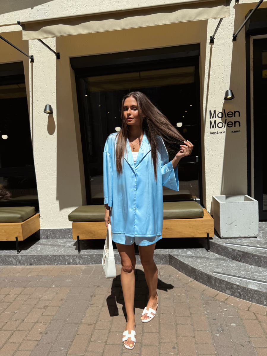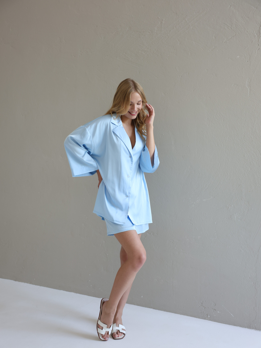 Домашній костюм із преміальної тканини шовк арміні - це поєднання елегантності, комфорту та витонченого стилю. Легка, гладка та приємна до тіла тканина ніжно огортає шкіру, даруючи відчуття розкоші навіть у домашній атмосфері. Сорочка вільного крою створює невимушений силует, а шорти з комфортною посадкою забезпечують максимальну свободу рухів.