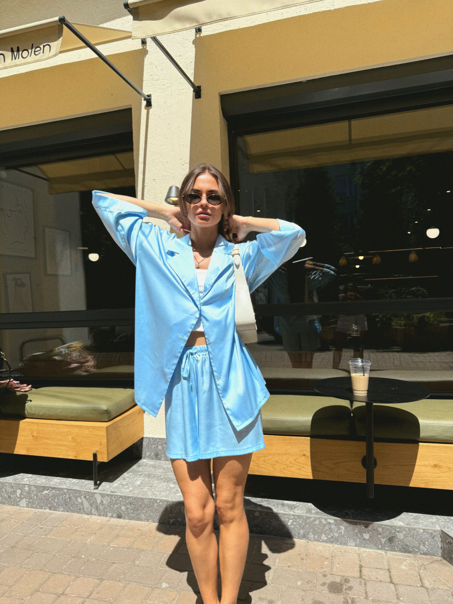 Жіночий костюм Elle сорочка та шорти, блакитний