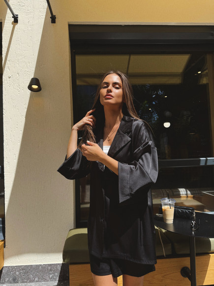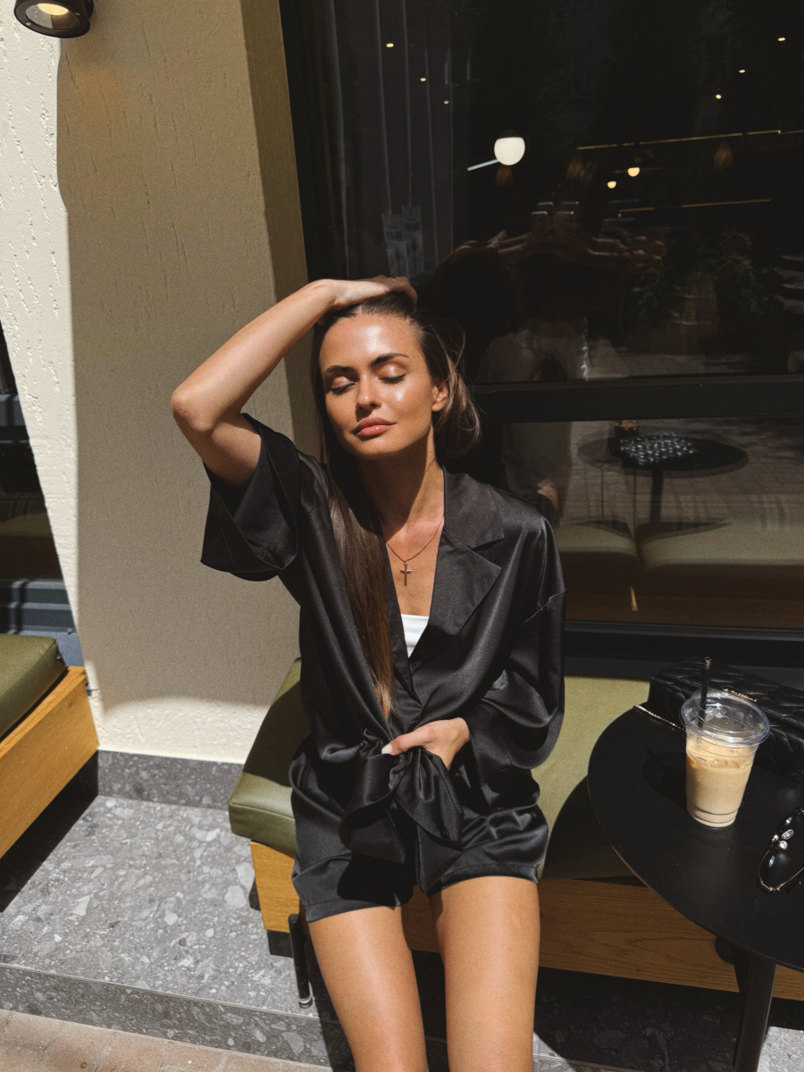 Домашній костюм із преміальної тканини шовк арміні - це поєднання елегантності, комфорту та витонченого стилю. Легка, гладка та приємна до тіла тканина ніжно огортає шкіру, даруючи відчуття розкоші навіть у домашній атмосфері. Сорочка вільного крою створює невимушений силует, а шорти з комфортною посадкою забезпечують максимальну свободу рухів.