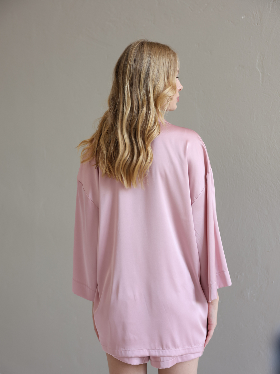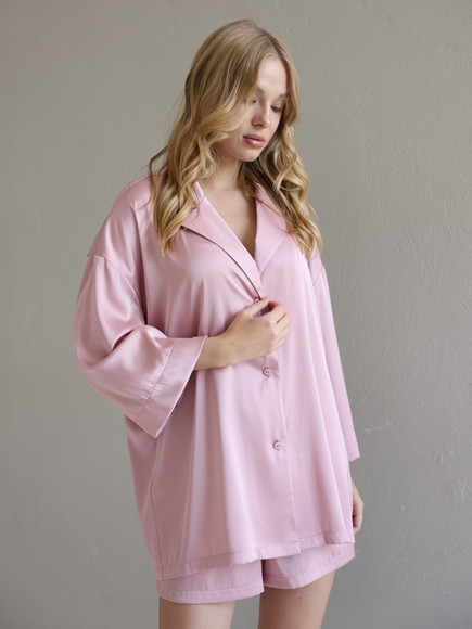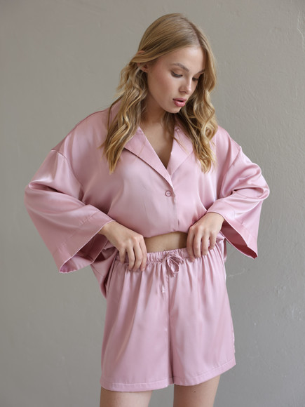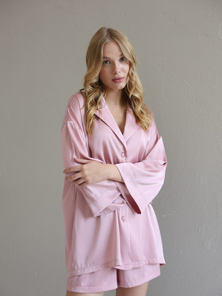 Домашній костюм із преміальної тканини шовк арміні - це поєднання елегантності, комфорту та витонченого стилю. Легка, гладка та приємна до тіла тканина ніжно огортає шкіру, даруючи відчуття розкоші навіть у домашній атмосфері. Сорочка вільного крою створює невимушений силует, а шорти з комфортною посадкою забезпечують максимальну свободу рухів.