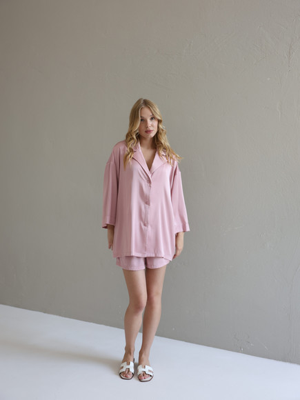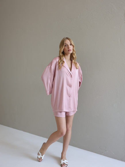 Домашній костюм із преміальної тканини шовк арміні - це поєднання елегантності, комфорту та витонченого стилю. Легка, гладка та приємна до тіла тканина ніжно огортає шкіру, даруючи відчуття розкоші навіть у домашній атмосфері. Сорочка вільного крою створює невимушений силует, а шорти з комфортною посадкою забезпечують максимальну свободу рухів.