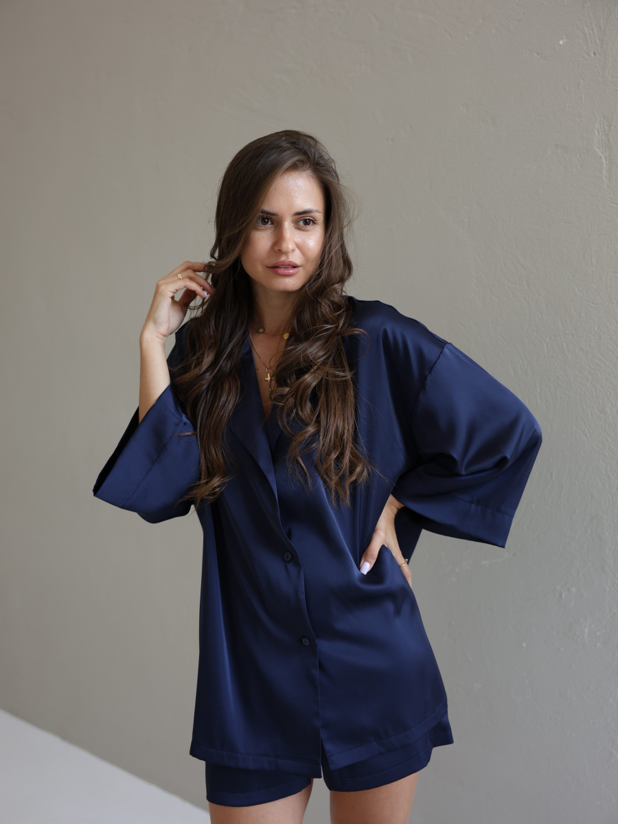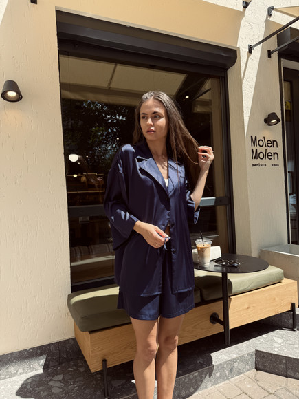 Домашній костюм із преміальної тканини шовк арміні - це поєднання елегантності, комфорту та витонченого стилю. Легка, гладка та приємна до тіла тканина ніжно огортає шкіру, даруючи відчуття розкоші навіть у домашній атмосфері. Сорочка вільного крою створює невимушений силует, а шорти з комфортною посадкою забезпечують максимальну свободу рухів.