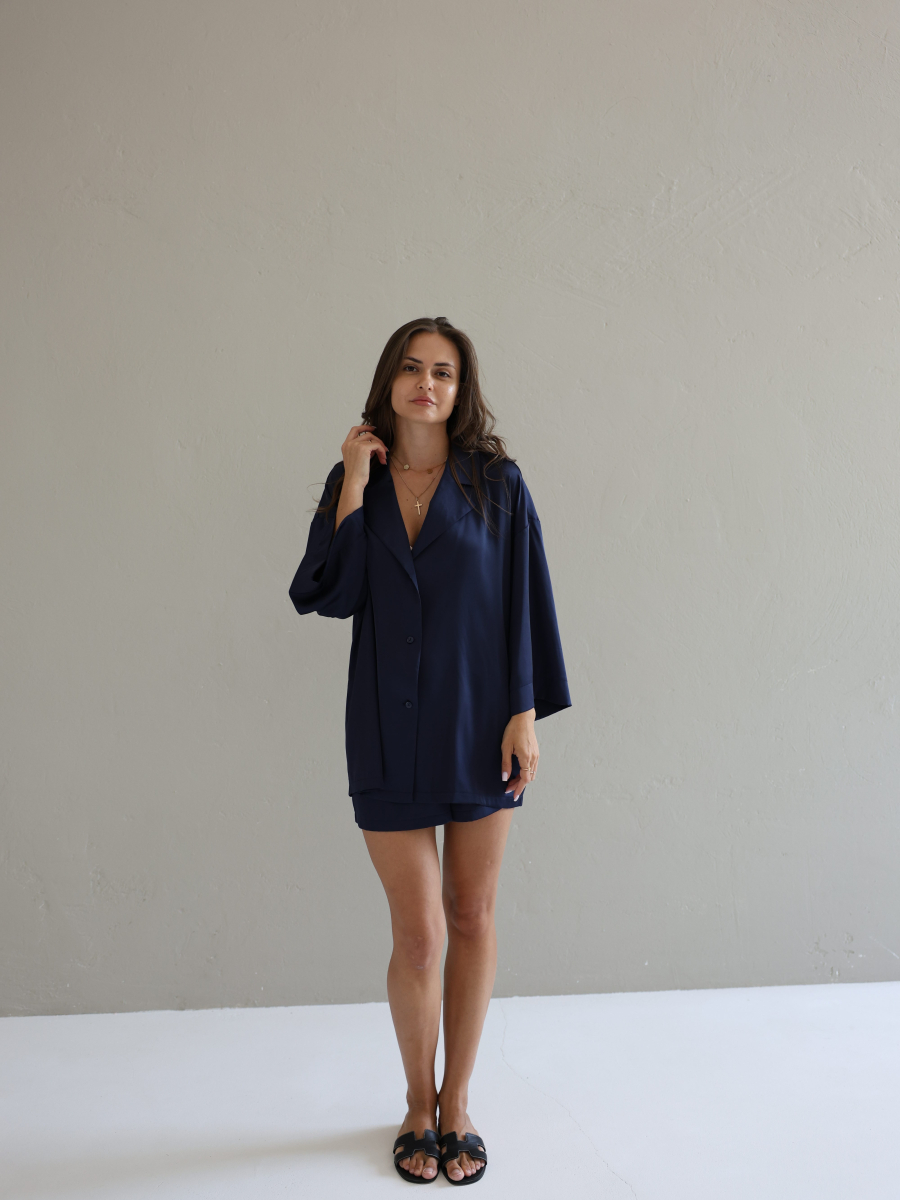 Жіночий костюм Elle сорочка та шорти, темно-синій