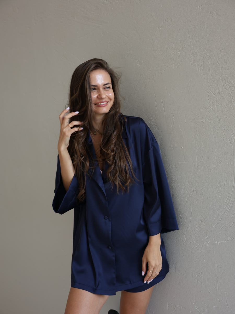 Домашній костюм із преміальної тканини шовк арміні - це поєднання елегантності, комфорту та витонченого стилю. Легка, гладка та приємна до тіла тканина ніжно огортає шкіру, даруючи відчуття розкоші навіть у домашній атмосфері. Сорочка вільного крою створює невимушений силует, а шорти з комфортною посадкою забезпечують максимальну свободу рухів.