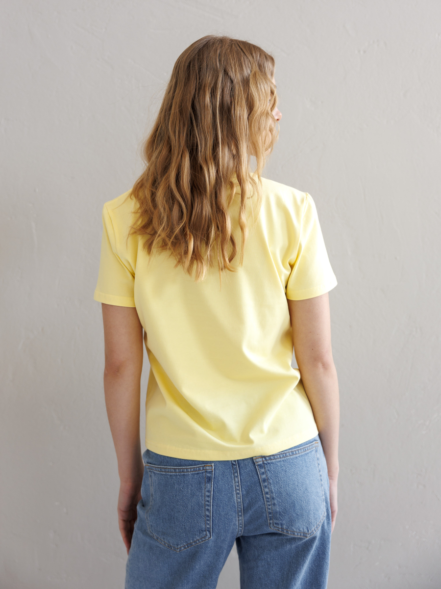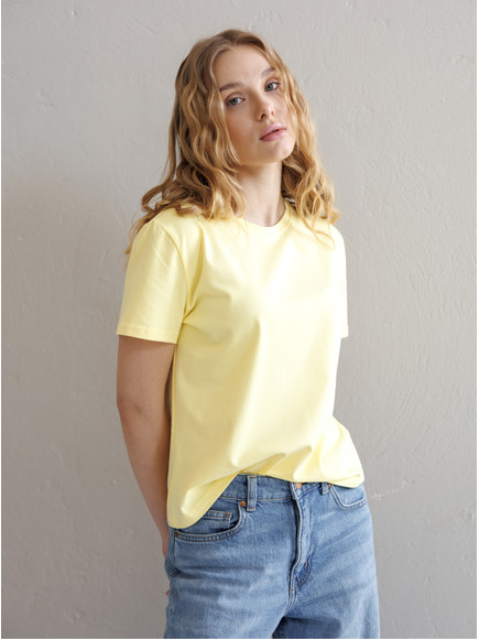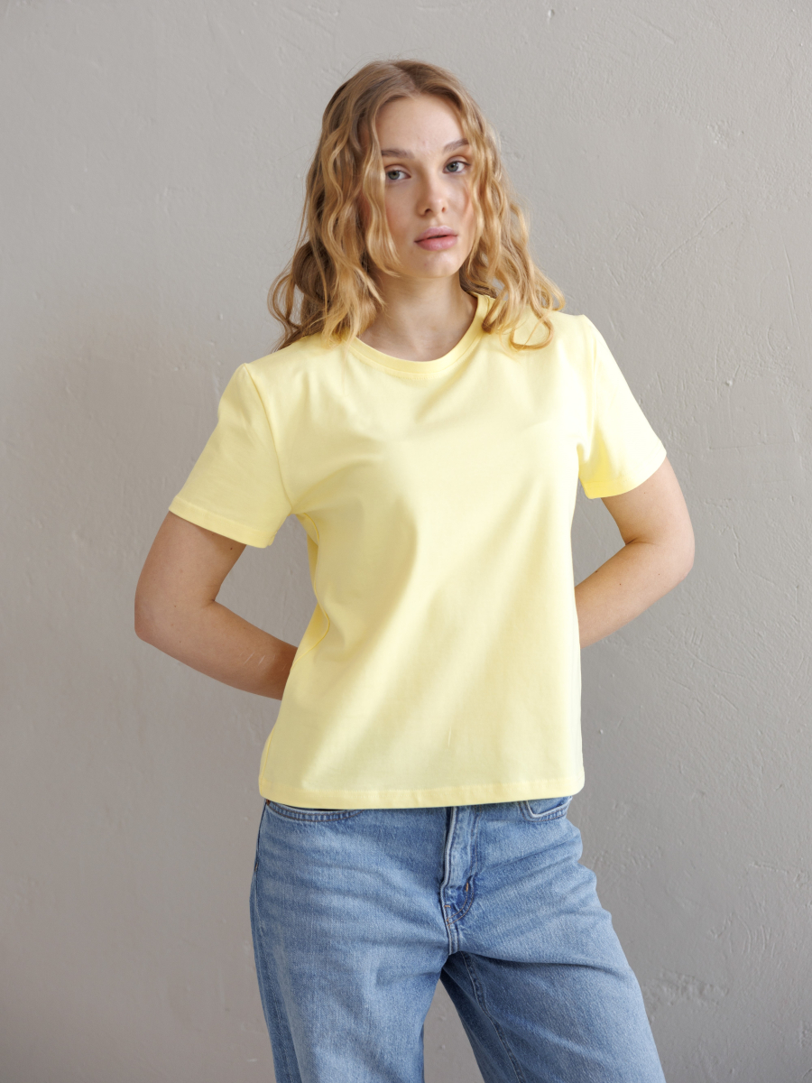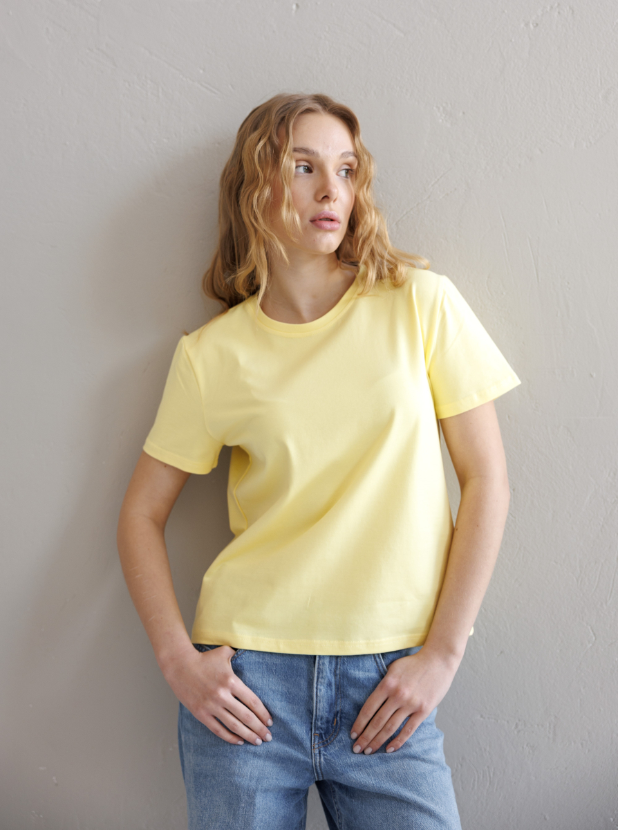 Базова футболка з тканини кулір для жінок та чоловіків. Тканина не парить, м'яка, дихаюча, гарно тримає форму та не втрачає колір після прання. Футболка має прямий крій та пряме плече.