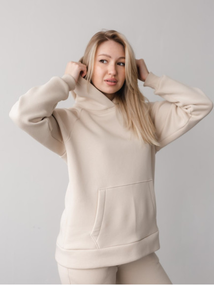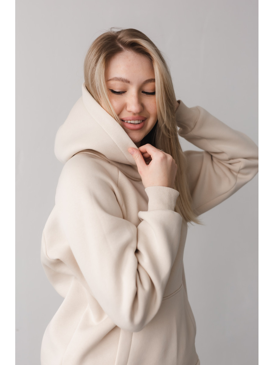 Стильний костюм виконаний зі щільної преміальної тканини з начісом, який гарантує тепло та комфорт у холодну пору. Особливістю моделі для дорослих є подвійний капюшон для додаткового затишку, тоді як дитячий варіант має одинарний капюшон. Манжети рукавів та штанів виконані із м'якого матеріалу - рібани, що забезпечує ідеальну посадку.