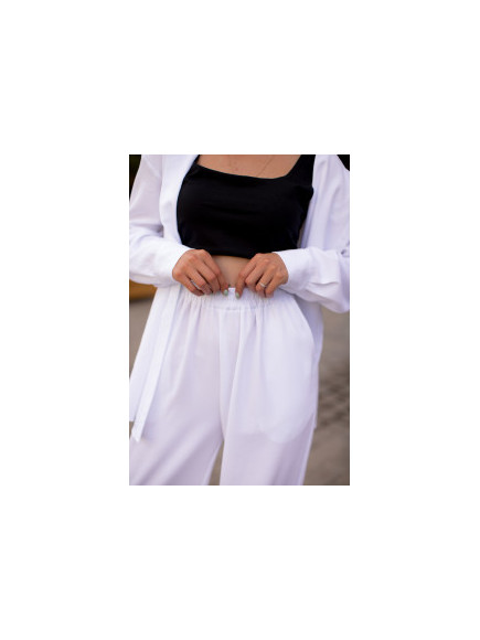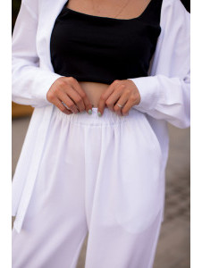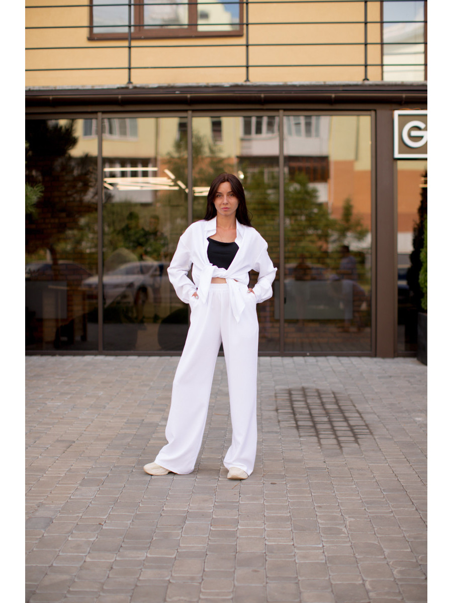 Легкий жіночий костюм Fly - це сорочка та штани палаццо, які виконані з льону стрейч. Тканина чудово вбирає вологу, що дозволяє зберігати відчуття свіжості та комфорту навіть у спекотну погоду. Подовжена сорочка на ґудзиках ідеально поєднується з будь-яким топом або майкою. Штани палаццо високої посадки з еластичною резинкою на поясі не перетискають шкіру. Їх можна носити з кросівками, босоніжками, кедами чи підборами