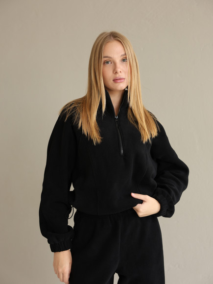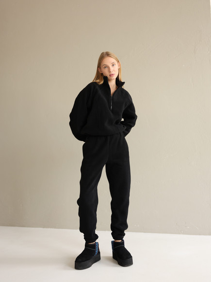Жіночий флісовий костюм Arctic, зіп-худі зі стійкою та базові джогери від Popov, чорний