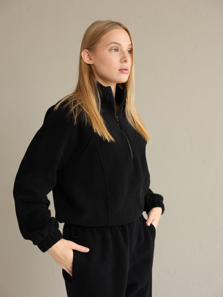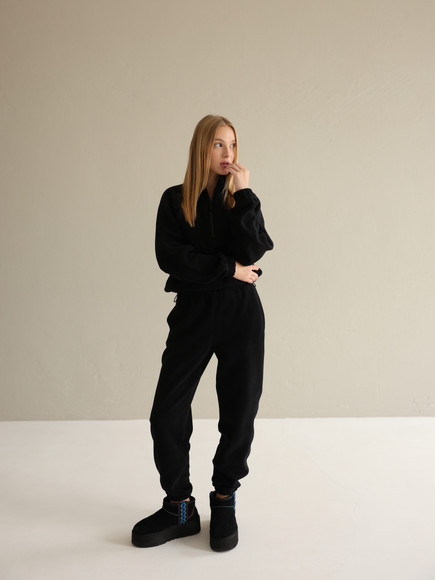 Жіночий флісовий костюм Arctic, зіп-худі зі стійкою та базові джогери від Popov, чорний