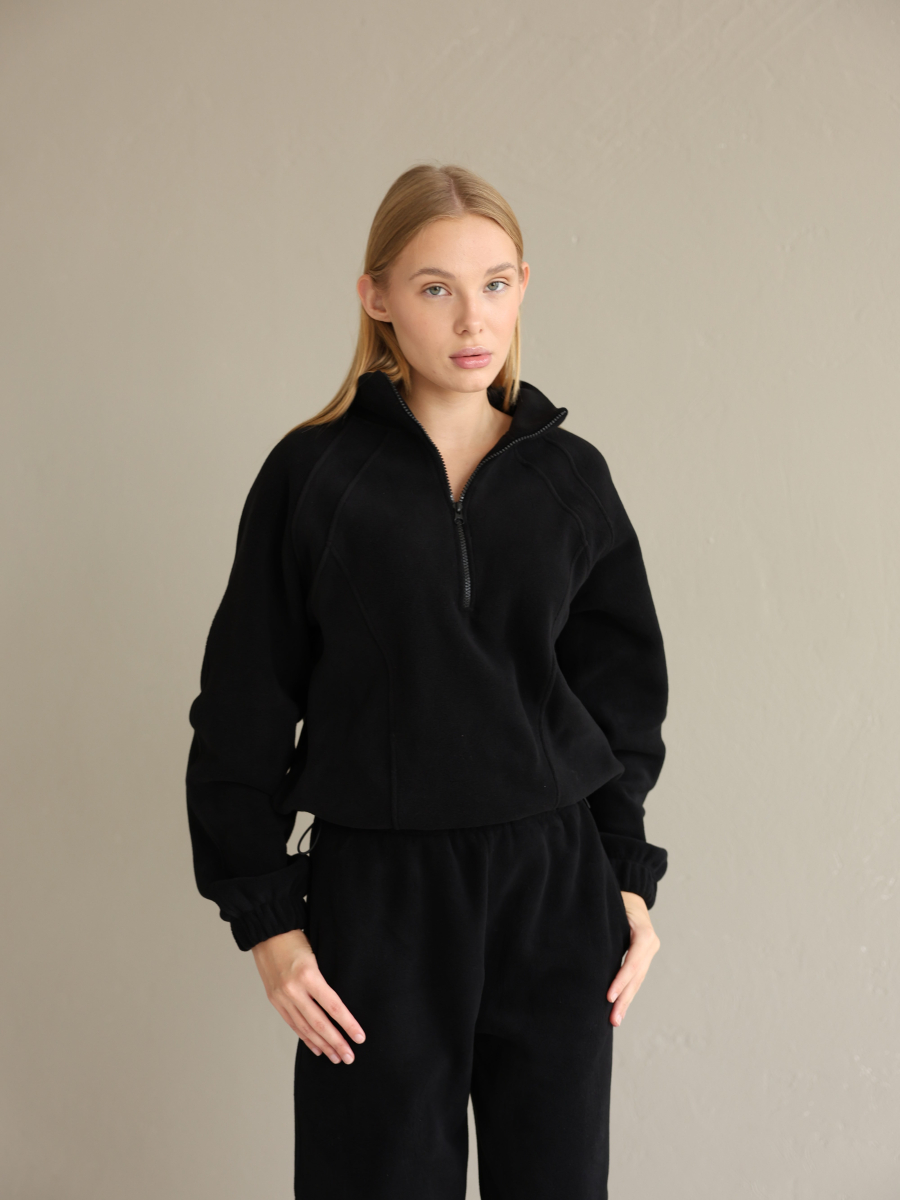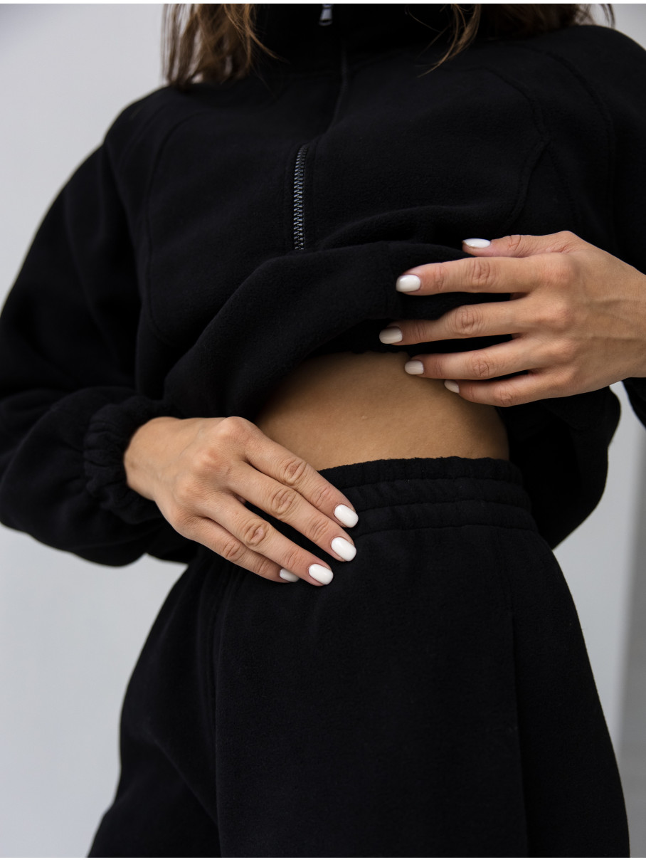 Жіночий флісовий костюм Arctic, зіп-худі зі стійкою та базові джогери від Popov, чорний