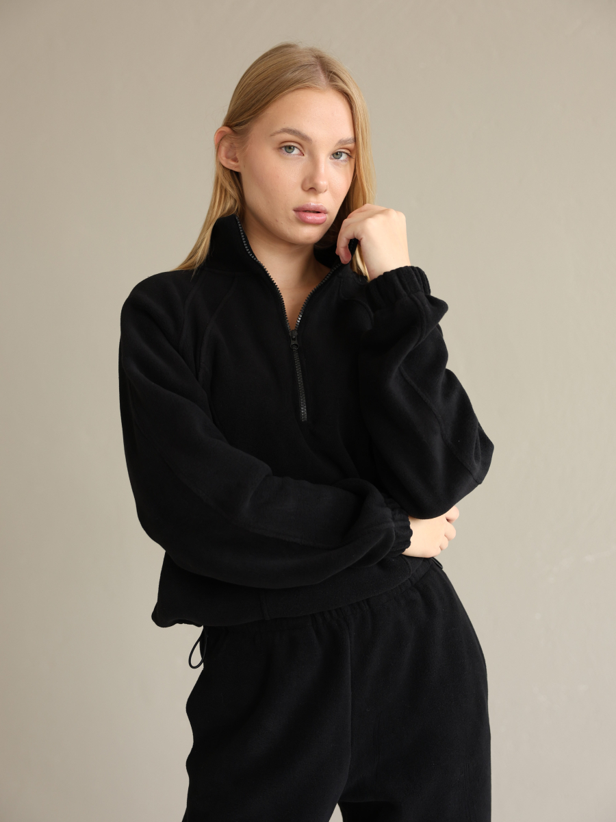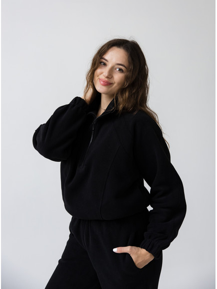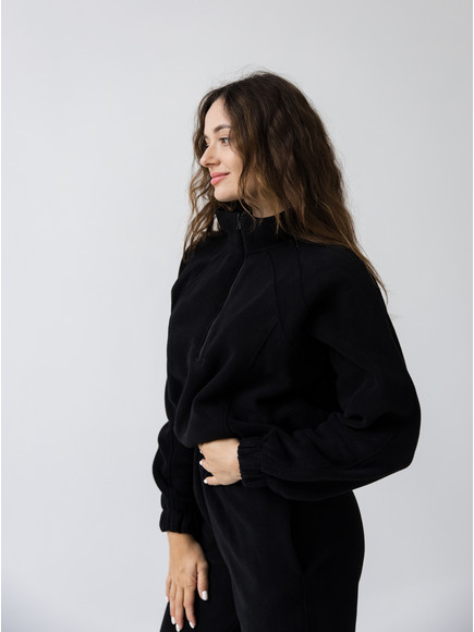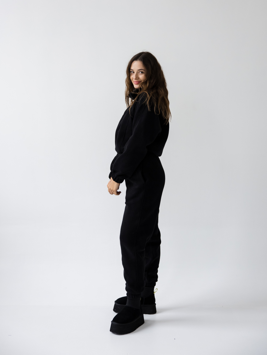 Жіночий флісовий костюм Arctic, зіп-худі зі стійкою та базові джогери від Popov, чорний