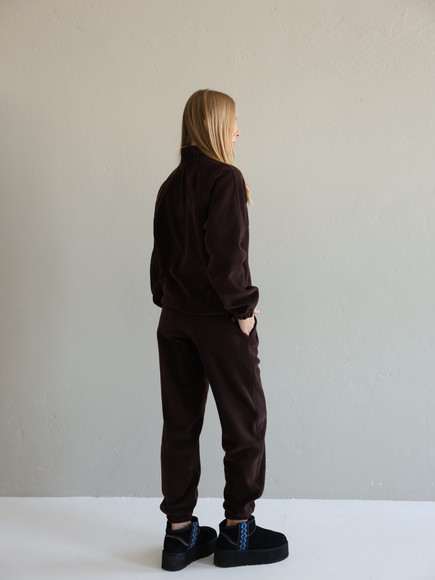 Жіночий флісовий костюм Arctic, зіп-худі зі стійкою та базові джогери, шоколад