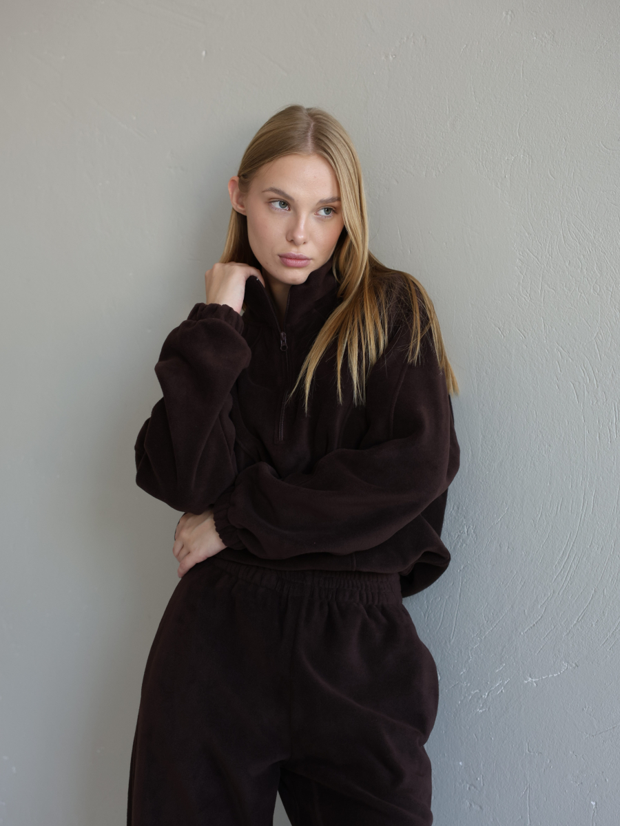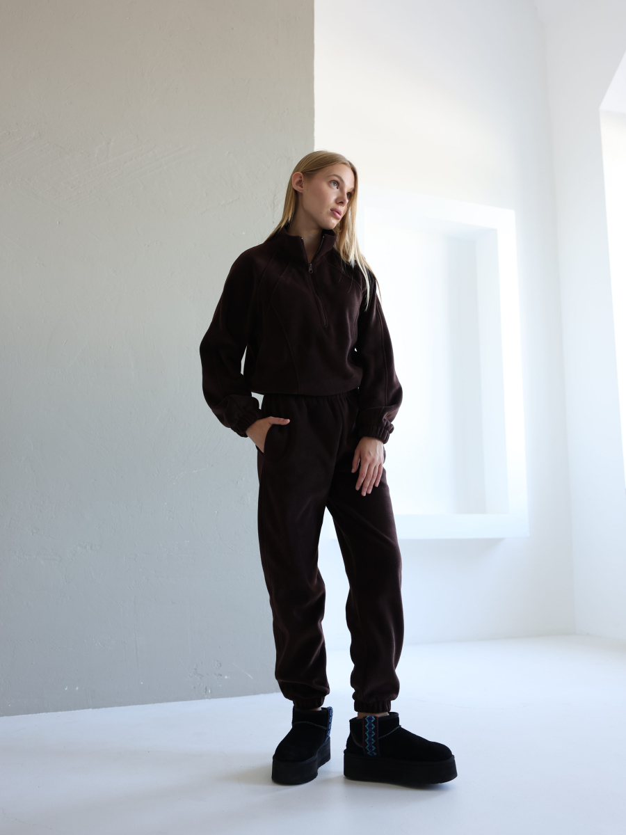 Жіночий флісовий костюм Arctic, зіп-худі зі стійкою та базові джогери, шоколад