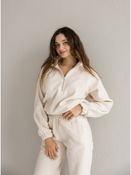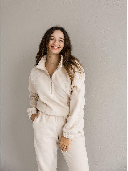 Жіночий флісовий костюм Arctic, зіп-худі зі стійкою та базові джогери від Popov св.бєж