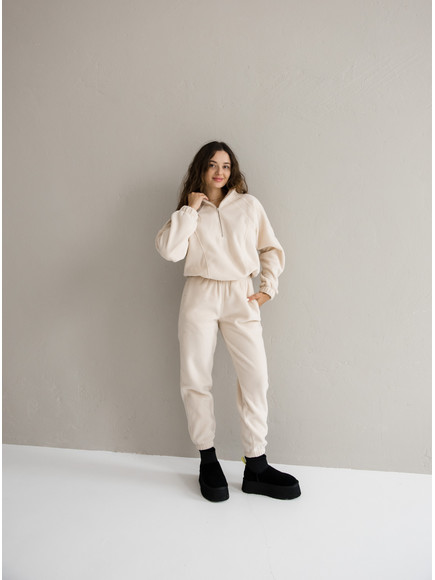 Жіночий флісовий костюм Arctic, зіп-худі зі стійкою та базові джогери від Popov св.бєж