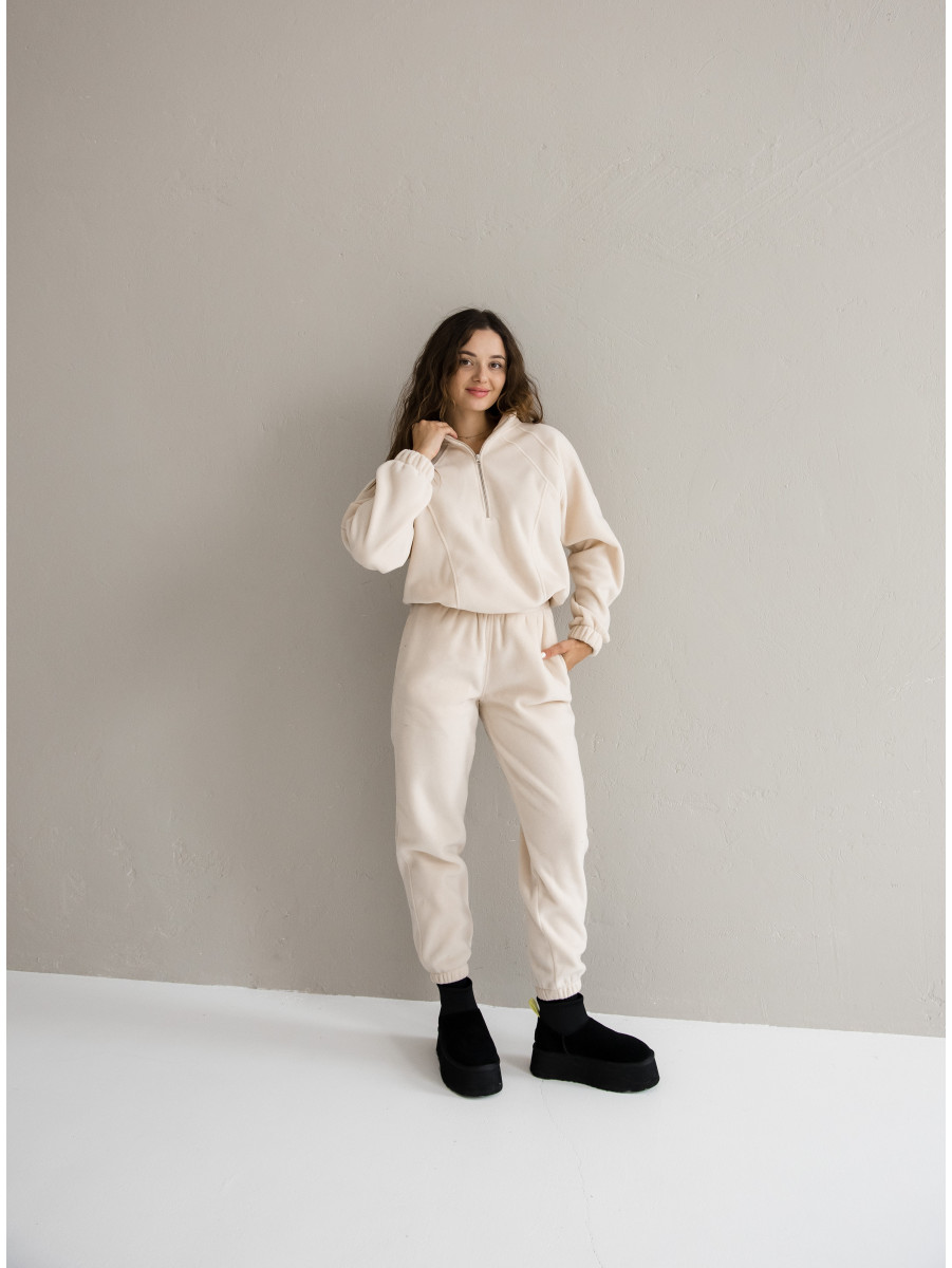 Жіночий флісовий костюм Arctic, зіп-худі зі стійкою та базові джогери від Popov св.бєж