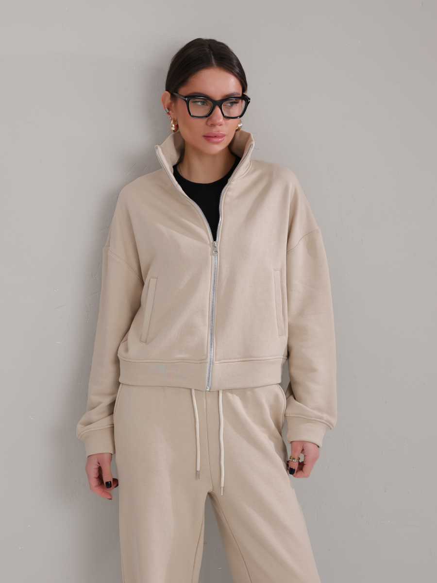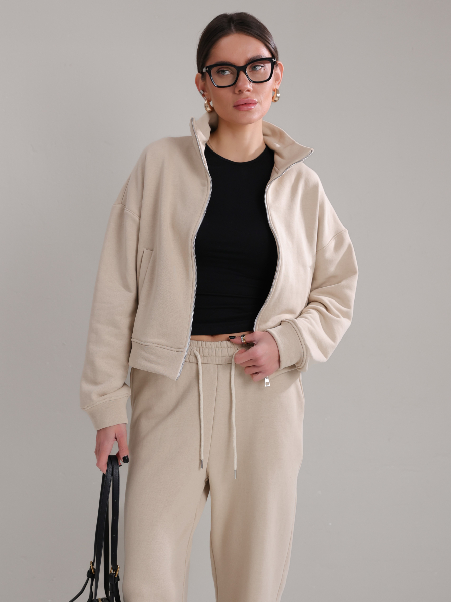Виконаний із тринитки зі шліфованим покриттям зовні та щільним переплетенням зсередини, завдяки чому костюм тримає форму, не витягується на колінах, виглядає охайно навіть після цілого дня в русі.