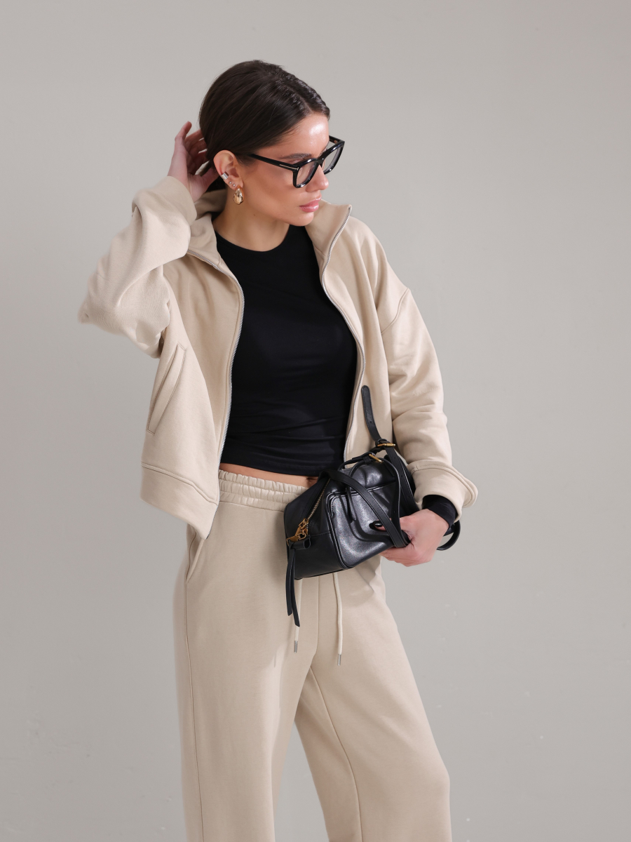 Його легко стилізувати з кедами для розслабленого casual, з масивними кросівками для sport-chic, з пальтом або тренчем для міського мінімалізму.