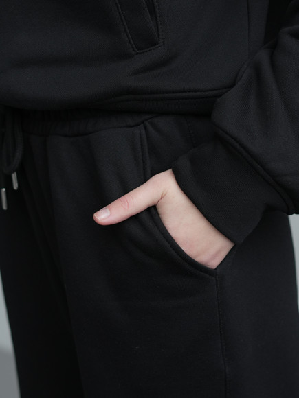 Виконаний із тринитки зі шліфованим покриттям зовні та щільним переплетенням зсередини, завдяки чому костюм тримає форму, не витягується на колінах, виглядає охайно навіть після цілого дня в русі.