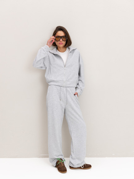 Виконаний із тринитки зі шліфованим покриттям зовні та щільним переплетенням зсередини, завдяки чому костюм тримає форму, не витягується на колінах, виглядає охайно навіть після цілого дня в русі.