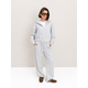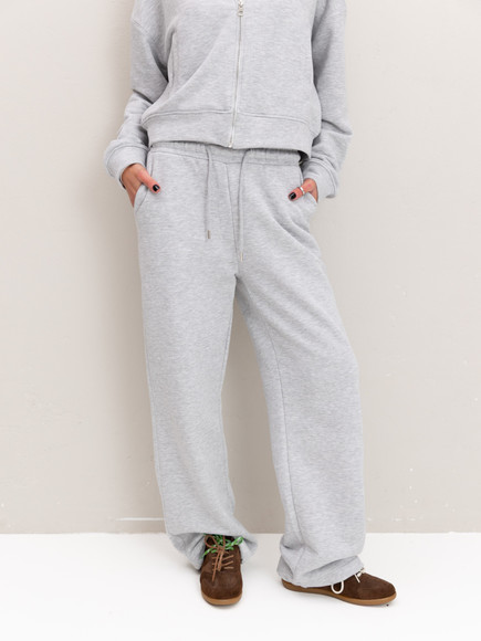 Модель складається з джемпера зі стійкою та кишенями-листочками і прямими штанами середньої посадки із затяжками по низу для створення різних образів.