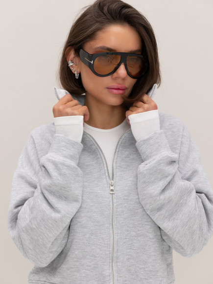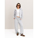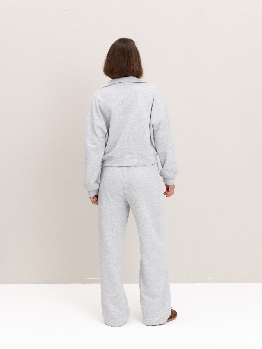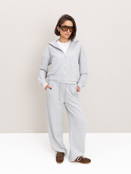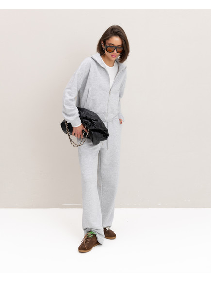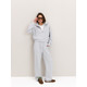 Модель складається з джемпера зі стійкою та кишенями-листочками і прямими штанами середньої посадки із затяжками по низу для створення різних образів.