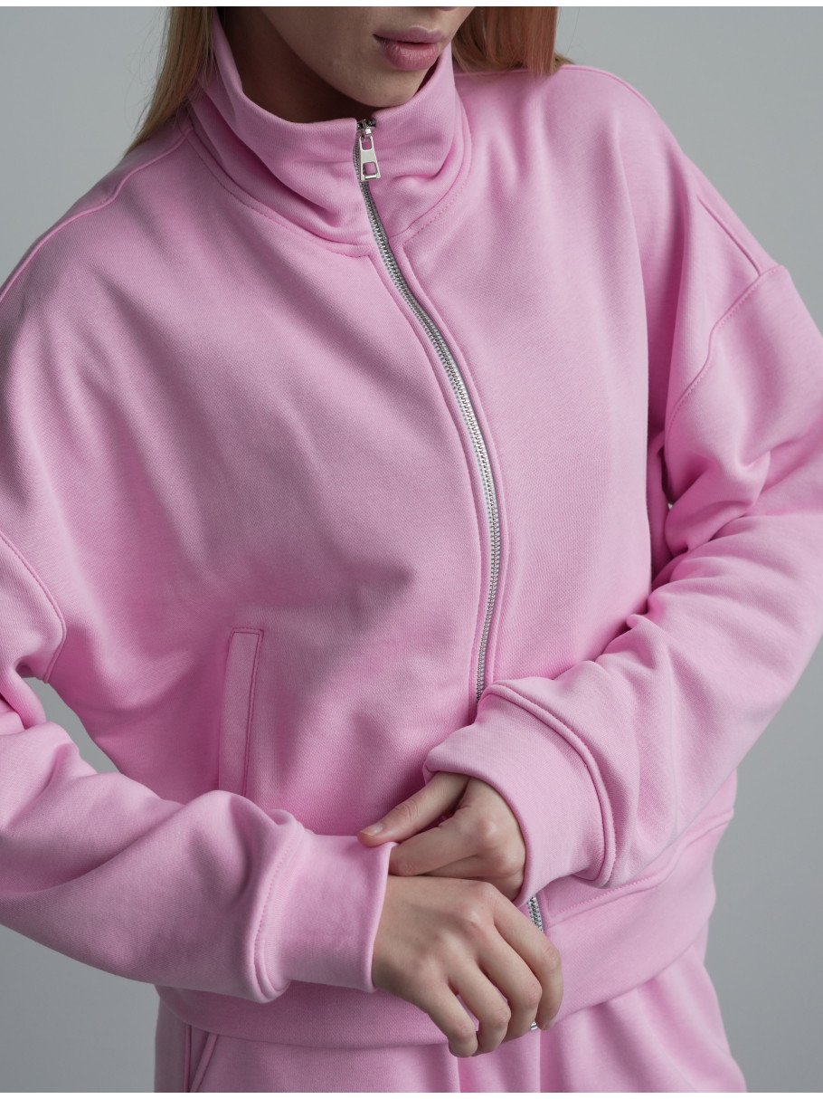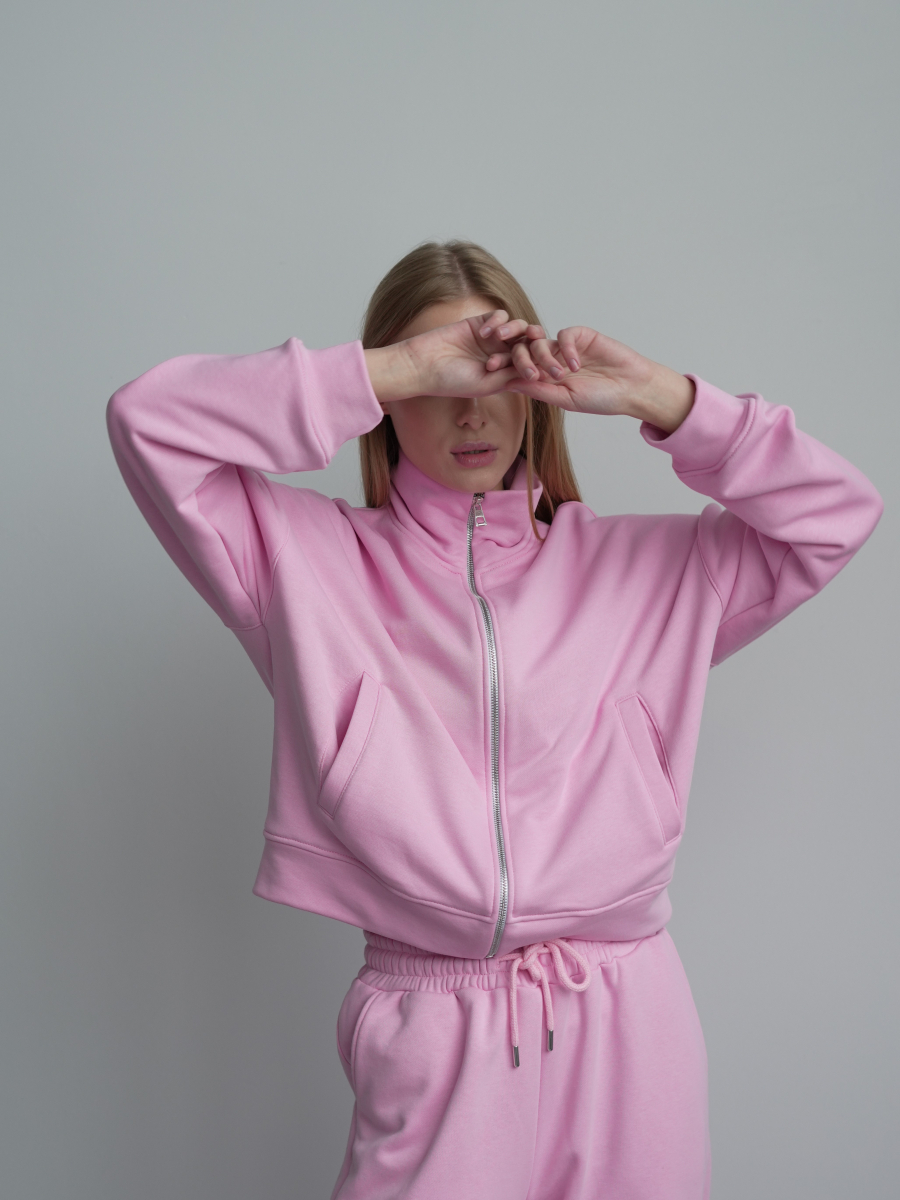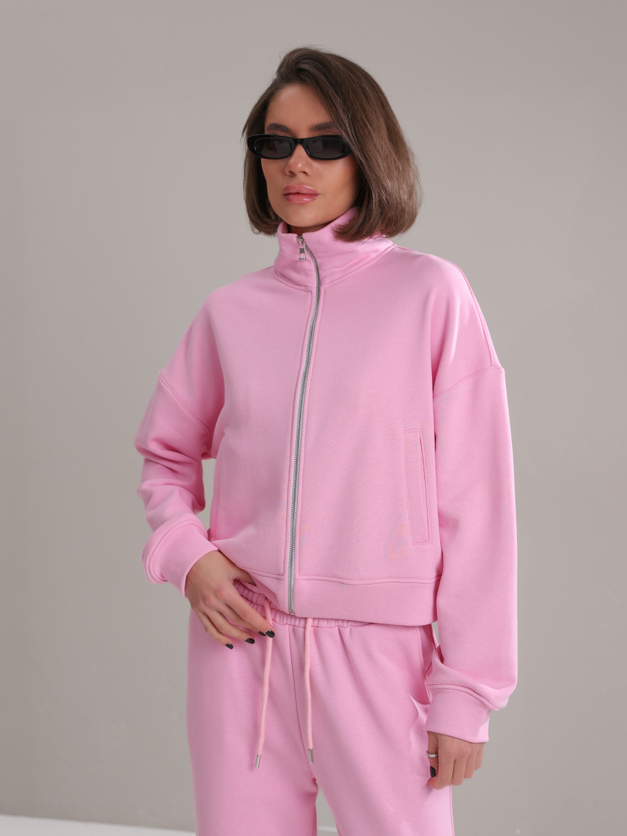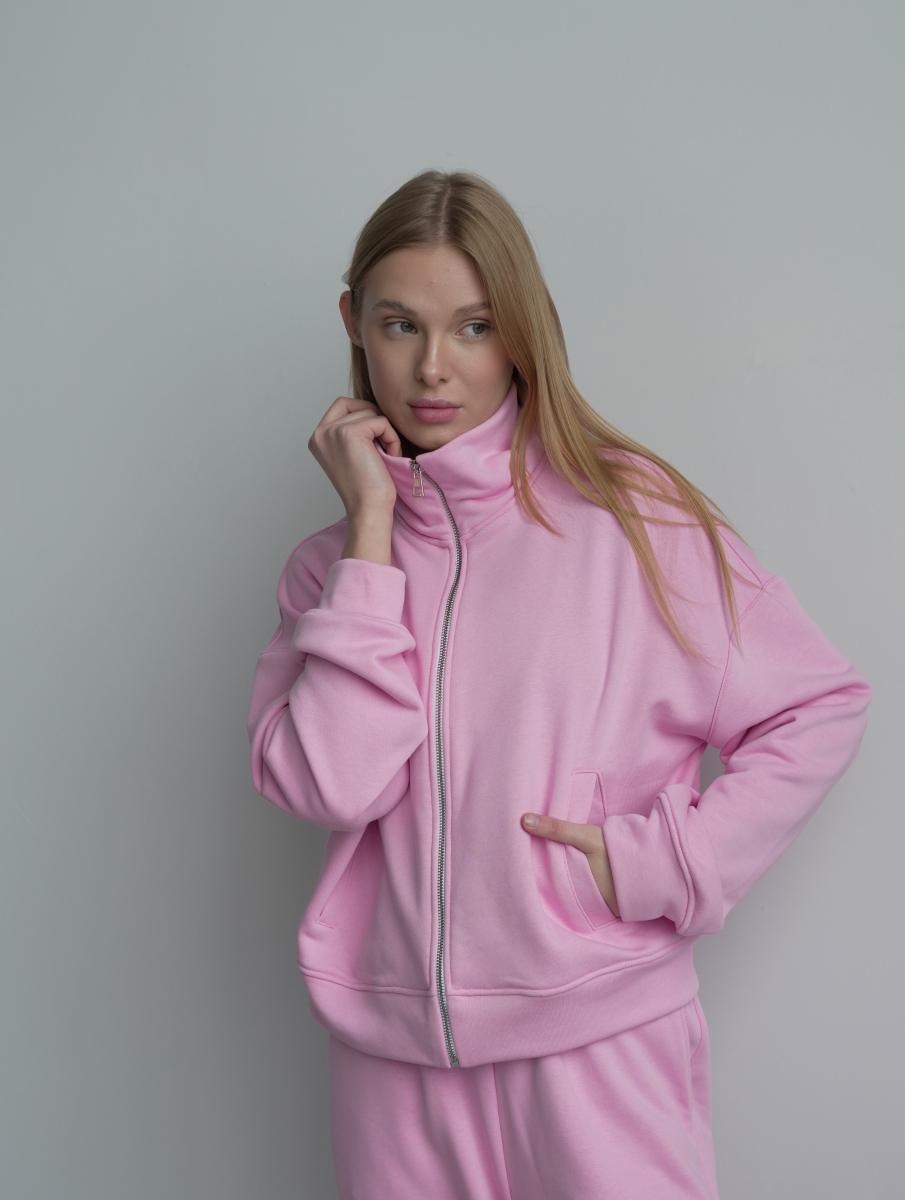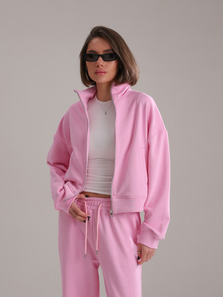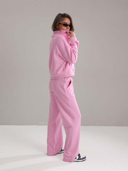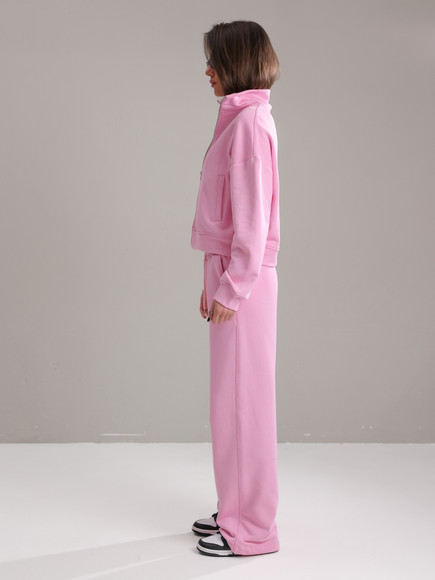 Модель складається з джемпера зі стійкою та кишенями-листочками і прямими штанами середньої посадки із затяжками по низу для створення різних образів.