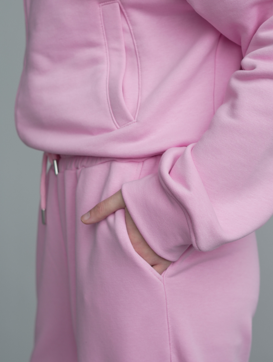 Виконаний із тринитки зі шліфованим покриттям зовні та щільним переплетенням зсередини, завдяки чому костюм тримає форму, не витягується на колінах, виглядає охайно навіть після цілого дня в русі.
