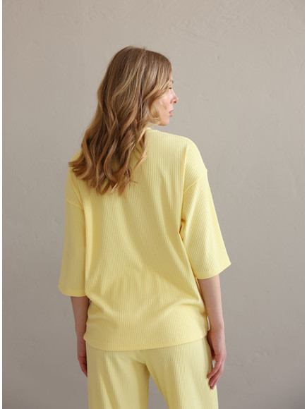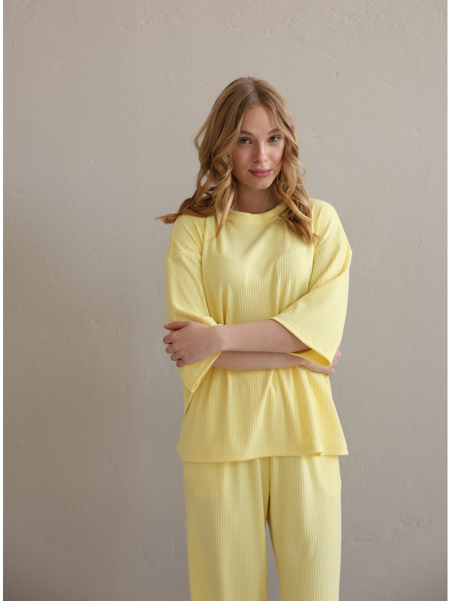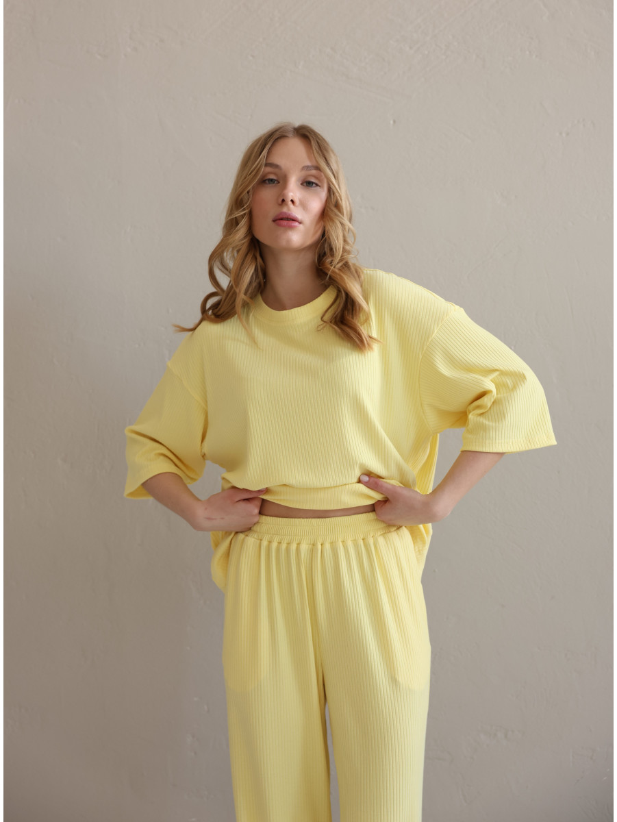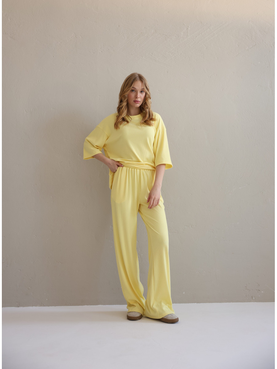 Жіночий костюм "Кежуал" футболка вільного крою та палаццо з рубчик-мустанг, лимон