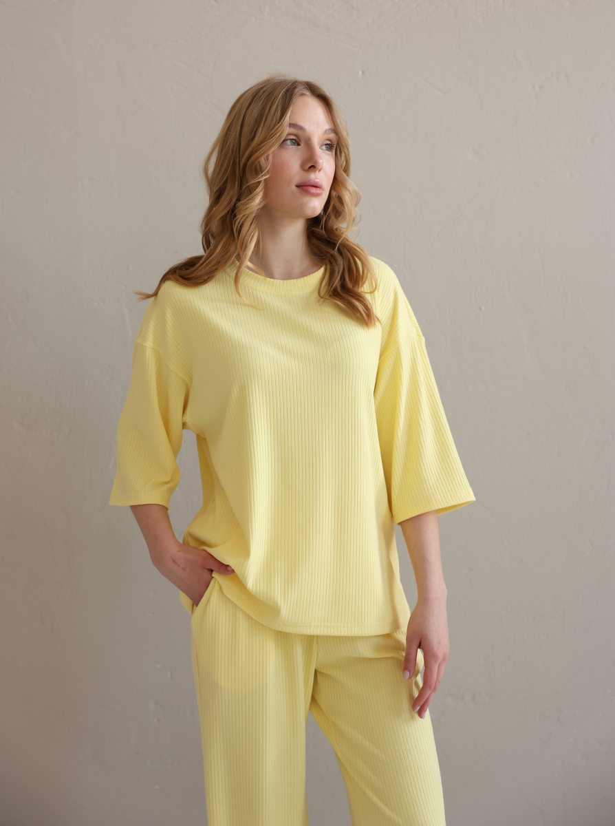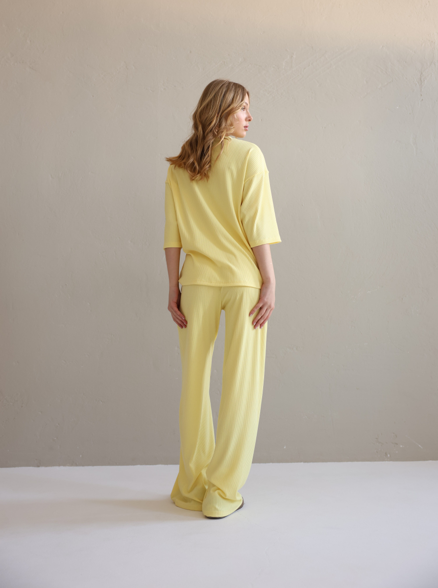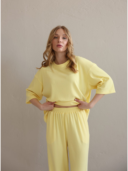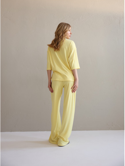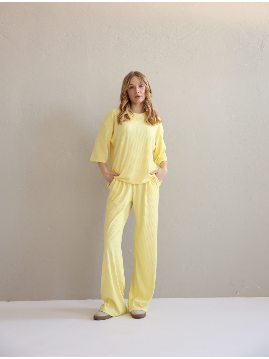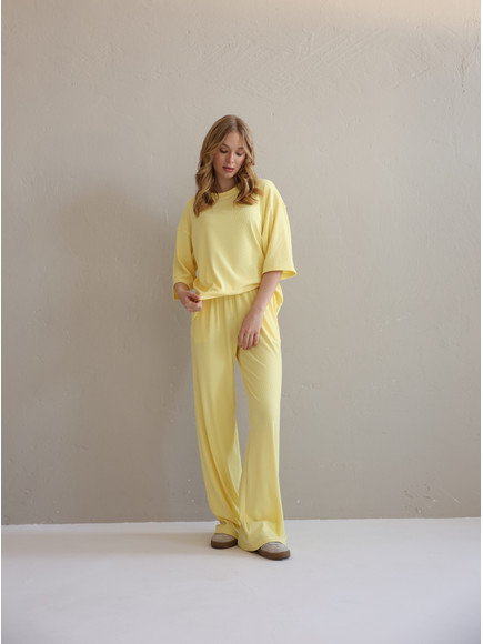 Жіночий костюм "Кежуал" футболка вільного крою та палаццо з рубчик-мустанг, лимон