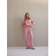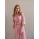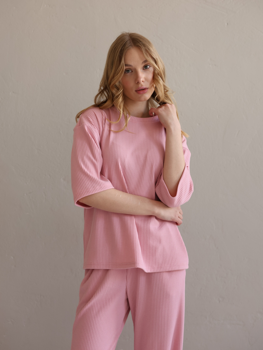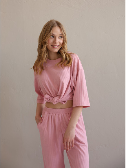 Жіночий костюм "Кежуал" футболка вільного крою та палаццо з рубчик-мустанг, рожевий